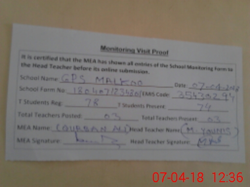 | EMIS Code: 35430294 | Name of School: GPS MALKOO | |||