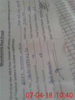 | EMIS Code: 31310790 | Name of School: GGES MUSA WALA | |||