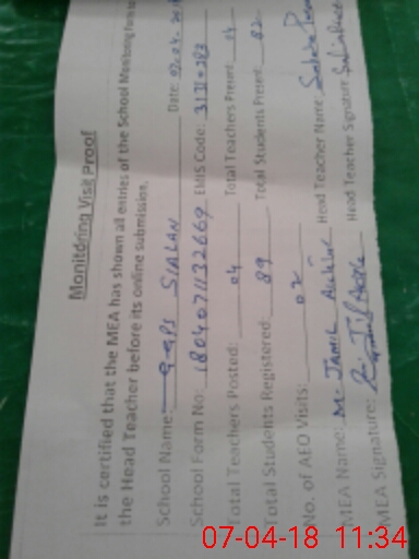 | Certified that this School was Inspected by the Undersigned MEA/DMO Today and the Information Stated Above is as Per Record. | |||||