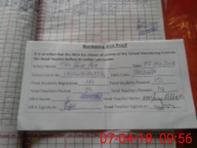 | Attendance Register | Head Teacher | MEA with School | Visit Proof |