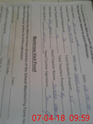 | Attendance Register | Head Teacher | MEA with School | Visit Proof |
