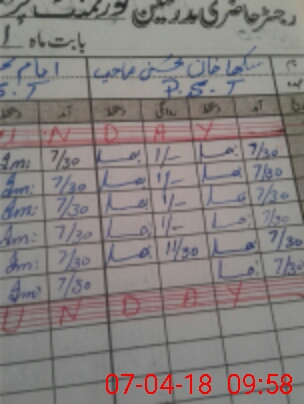 | CNIC | Full Name | Designation | R/C | Absence During Last Calender Month |