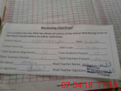 | Attendance Register | Head Teacher | MEA with School | Visit Proof |