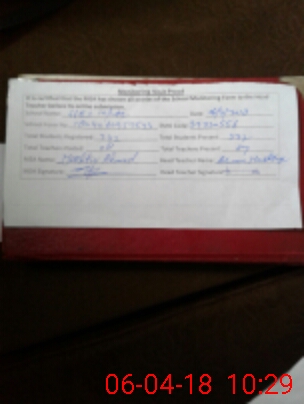| Attendance Register | Head Teacher | MEA with School | Visit Proof |