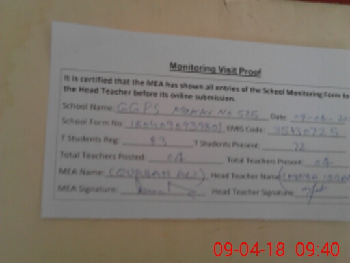 | Certified that this School was Inspected by the Undersigned MEA/DMO Today and the Information Stated Above is as Per Record. | |||||