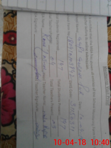 | Certified that this School was Inspected by the Undersigned MEA/DMO Today and the Information Stated Above is as Per Record. | |||||