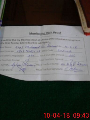 | Certified that this School was Inspected by the Undersigned MEA/DMO Today and the Information Stated Above is as Per Record. | |||||