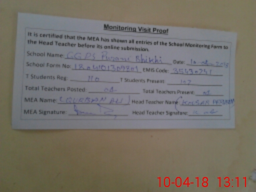 | EMIS Code: 35430741 | Name of School: GGPS PURANI BHIKI | |||