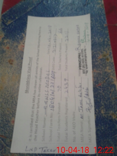 | Certified that this School was Inspected by the Undersigned MEA/DMO Today and the Information Stated Above is as Per Record. | |||||