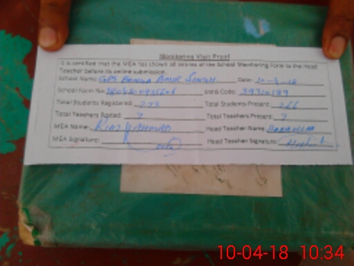 | Attendance Register | Head Teacher | MEA with School | Visit Proof |