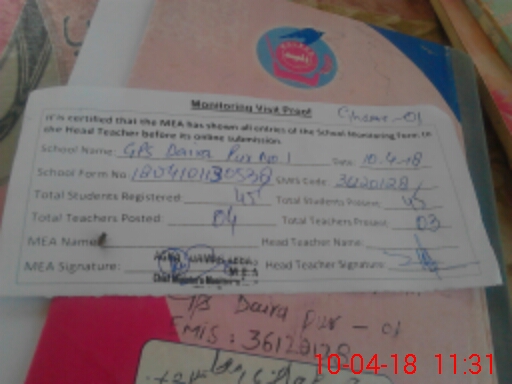 | EMIS Code: 36120128 | Name of School: GPS DAIRA PUR 1 P/O SIKANDARABAD SHUJABAD | |||