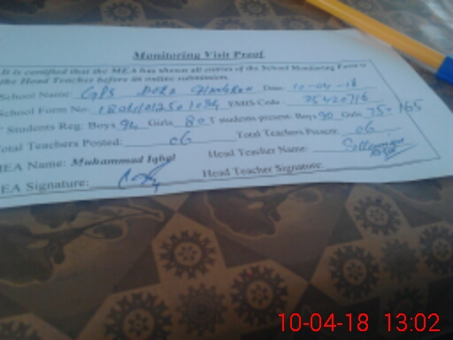 | Certified that this School was Inspected by the Undersigned MEA/DMO Today and the Information Stated Above is as Per Record. | |||||