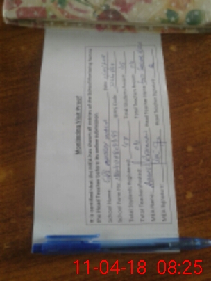| School Visited by School Health & Nutrition Supervisor (No. of Visits) | 1 | Name1: | PERVAZ AKHTAR | Name2: | Nil |