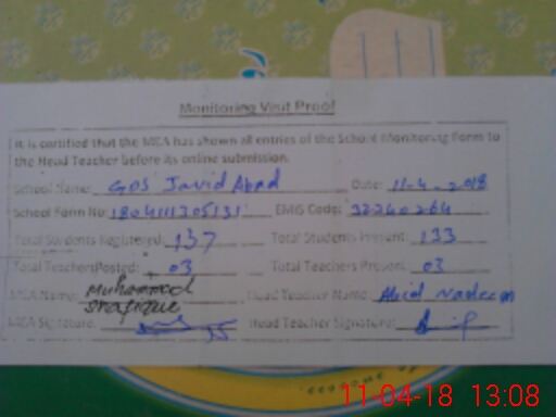 | EMIS Code: 32340264 | Name of School: GPS S JAVAID ABAD | |||