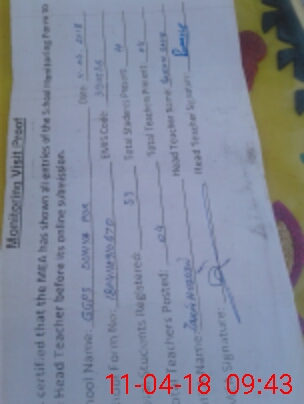 | Monitoring Date: 11-04-2018 | Start Time: 11-04-2018 09:10 AM | End Time: 11-04-2018 09:45 AM | Name of MEA: Za**** Hu**** | |