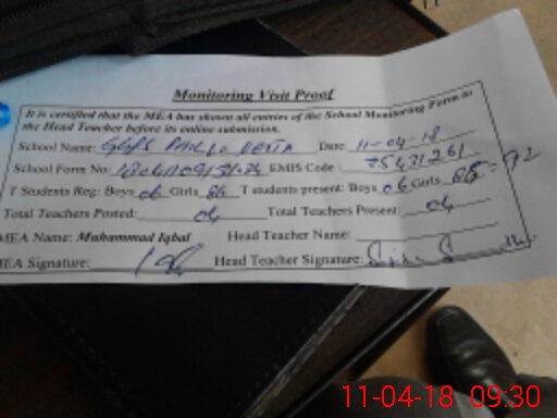 | Attendance Register | Head Teacher | MEA with School | Visit Proof |