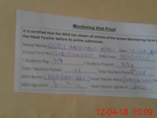 | EMIS Code: 35430726 | Name of School: GGES MEHMON WALI | |||