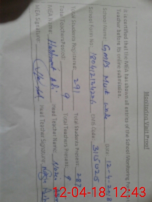 | Attendance Register | Head Teacher | MEA with School | Visit Proof |