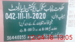 | Name: FA**** SU**** Designation: (School Headmaster's/Headmistress's) PRINCIPAL Phone/Cell Number: 03**** |