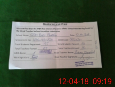 | Monitoring Date: 12-04-2018 | Start Time: 12-04-2018 08:44 AM | End Time: 12-04-2018 09:28 AM | Name of MEA: SH**** AL**** | |