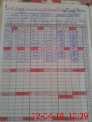 | CNIC | Full Name | Designation | R/C | Absence During Last Calender Month |
