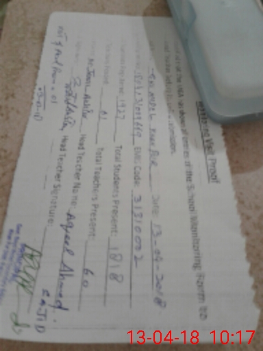 | Attendance Register | Head Teacher | MEA with School | Visit Proof |