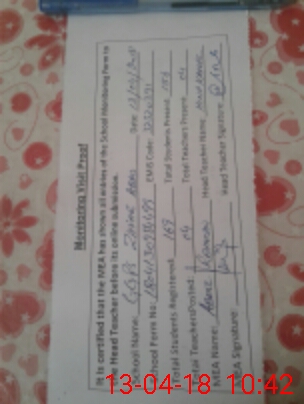 | Attendance Register | Head Teacher | MEA with School | Visit Proof |
