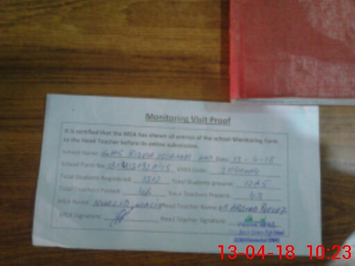 | Certified that this School was Inspected by the Undersigned MEA/DMO Today and the Information Stated Above is as Per Record. | |||||
