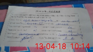 | Monitoring Date: 13-04-2018 | Start Time: 13-04-2018 09:26 AM | End Time: 13-04-2018 10:15 AM | Name of MEA: Sh**** Mu**** | |