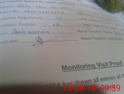 | Attendance Register | Head Teacher | MEA with School | Visit Proof |