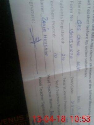 | Name: As**** Za**** Designation: (School Headmaster's/Headmistress's) SSE Arts Phone/Cell Number: 03**** |