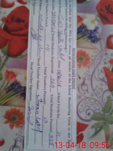 | Attendance Register | Head Teacher | MEA with School | Visit Proof |