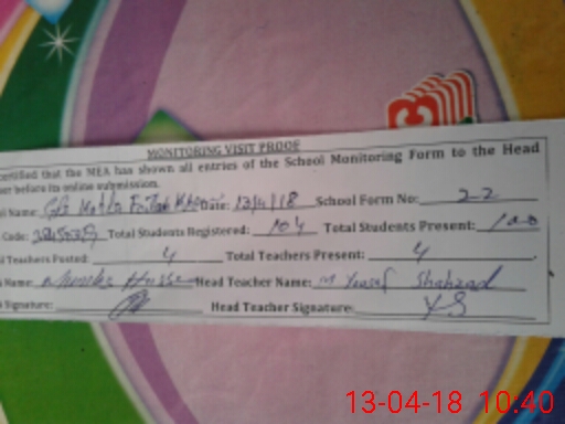 | Attendance Register | Head Teacher | MEA with School | Visit Proof |