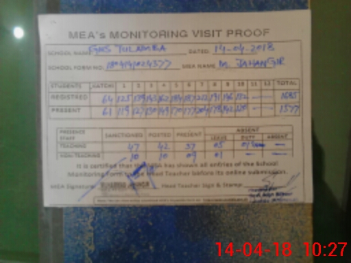 | Attendance Register | Head Teacher | MEA with School | Visit Proof |