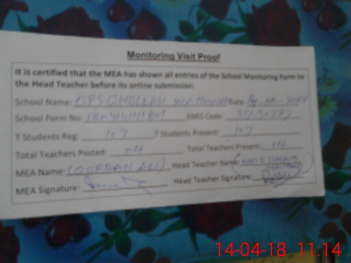 | EMIS Code: 35430287 | Name of School: GPS GHULLAH WATTOWAN | |||