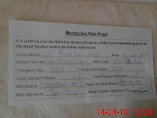 | Certified that this School was Inspected by the Undersigned MEA/DMO Today and the Information Stated Above is as Per Record. | |||||