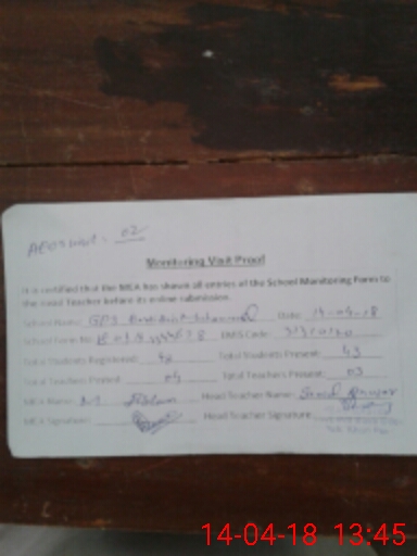 | Certified that this School was Inspected by the Undersigned MEA/DMO Today and the Information Stated Above is as Per Record. | |||||