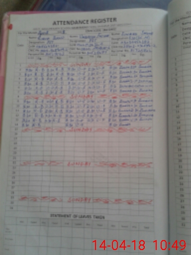 | CNIC | Full Name | Designation | R/C | Absence During Last Calender Month |