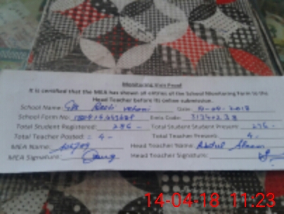 | Attendance Register | Head Teacher | MEA with School | Visit Proof |