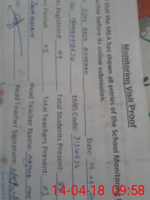 | Certified that this School was Inspected by the Undersigned MEA/DMO Today and the Information Stated Above is as Per Record. | |||||