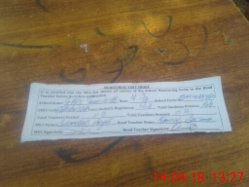 | Attendance Register | Head Teacher | MEA with School | Visit Proof |