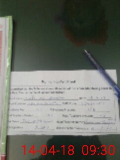 | Monitoring Date: 14-04-2018 | Start Time: 14-04-2018 08:47 AM | End Time: 14-04-2018 10:05 AM | Name of MEA: Ta**** Hu**** | |