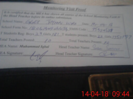 | EMIS Code: 35420528 | Name of School: GGES JOYIAN WALA | |||