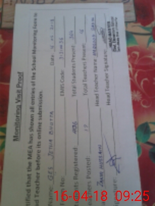 | Attendance Register | Head Teacher | MEA with School | Visit Proof |