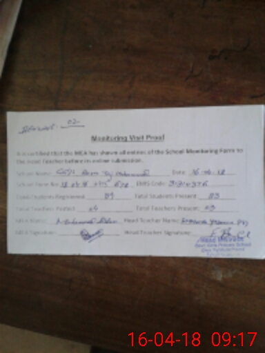 | Attendance Register | Head Teacher | MEA with School | Visit Proof |