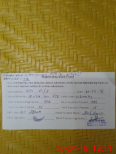 | Attendance Register | Head Teacher | MEA with School | Visit Proof |