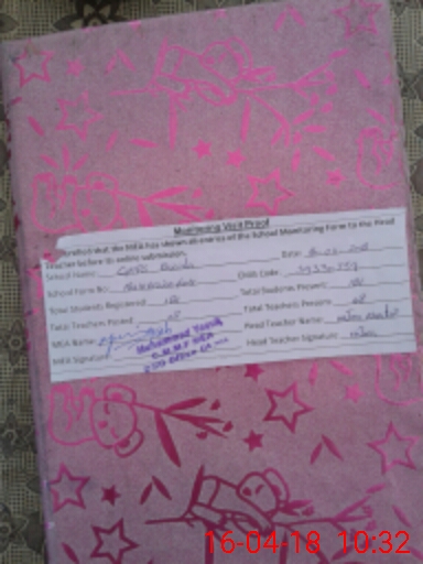 | Attendance Register | Head Teacher | MEA with School | Visit Proof |