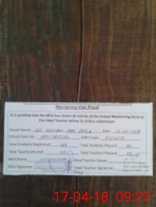 | Attendance Register | Head Teacher | MEA with School | Visit Proof |