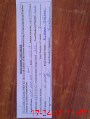 | Attendance Register | Head Teacher | MEA with School | Visit Proof |