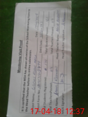 | Attendance Register | Head Teacher | MEA with School | Visit Proof |